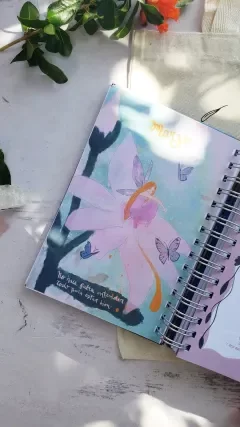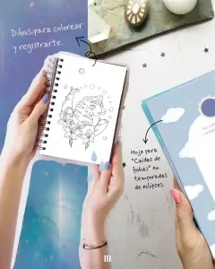 En sus páginas vas a encontrar un espacio para pausar, escribir, crear y volver a vos. Una guía que combina el ritmo de las lunas con propuestas creativas, frases sentipensadas, rituales simples y ejercicios de arteterapia. Todo pensado para que la vivas a tu manera: con colores, dibujos, silencios, lágrimas o carcajadas.